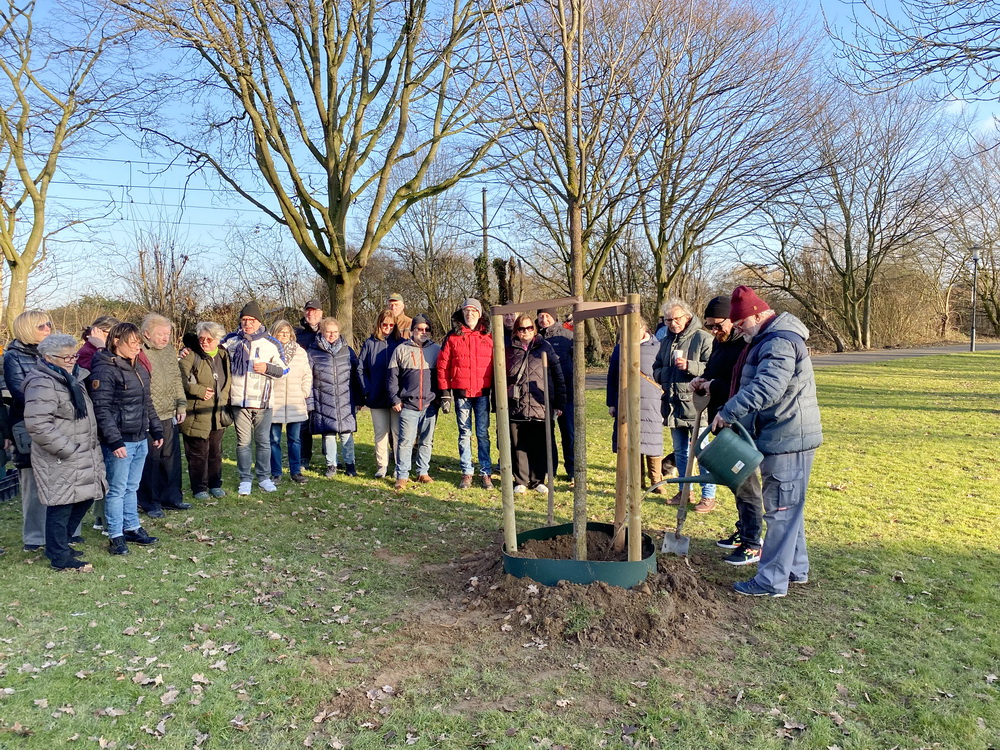 Peter Könen dankte auch der Baumschule Büssem-Indenklef, die den Baum beschafft und durch Inhaber Peter Büssem sach- und fachgerecht ins Erdreich gesetzt hat. Vorbereitende Arbeiten hätten dankenswerterweise die Teams von Klaus Speck vom Kommunalbetrieb Krefeld und Louis Schröder vom Fachbereich Umwelt und Verbraucherschutz der Stadt Krefeld erbracht.